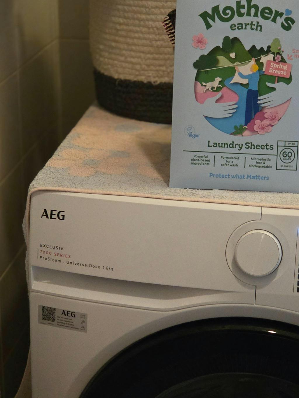 3. Add a laundry sheet and start the wash cycle.
