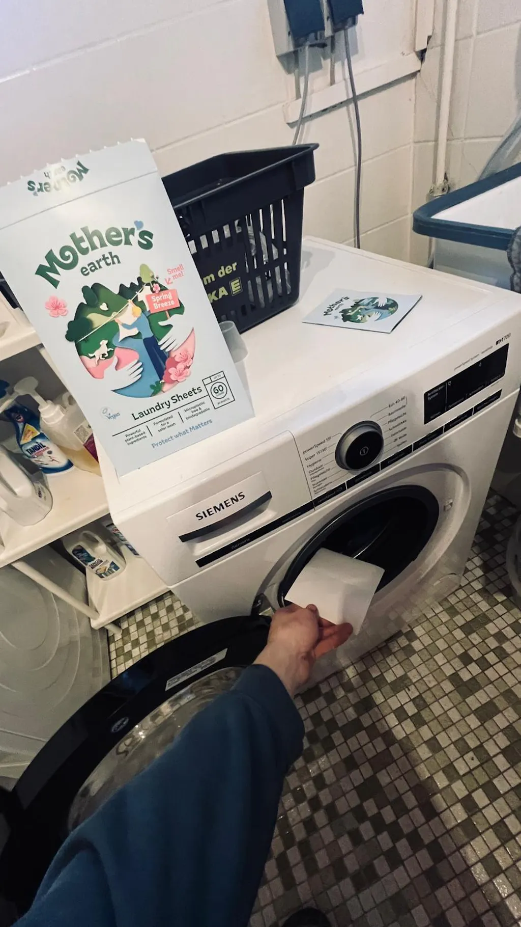 3. Add a laundry sheet and start the wash cycle.